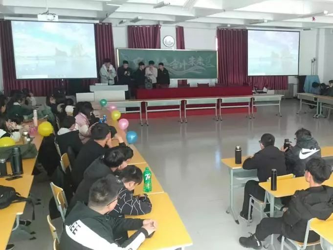 活动开始时,各寝室上台通过多媒体介绍宿舍成员、展示宿舍环境和氛围,并以宿舍为单位,进行小组节目展示。在寝室成员介绍环节,同学们通过使用PPT和视频与大家分享日常生活中的亮点和暖心点,以这样的形式加深同学们之间的了解,增强同一寝室的团结性和默契度。在小组节目展示环节,同学们或通过词曲小令,或通过歌曲合唱来展示寝室风采。