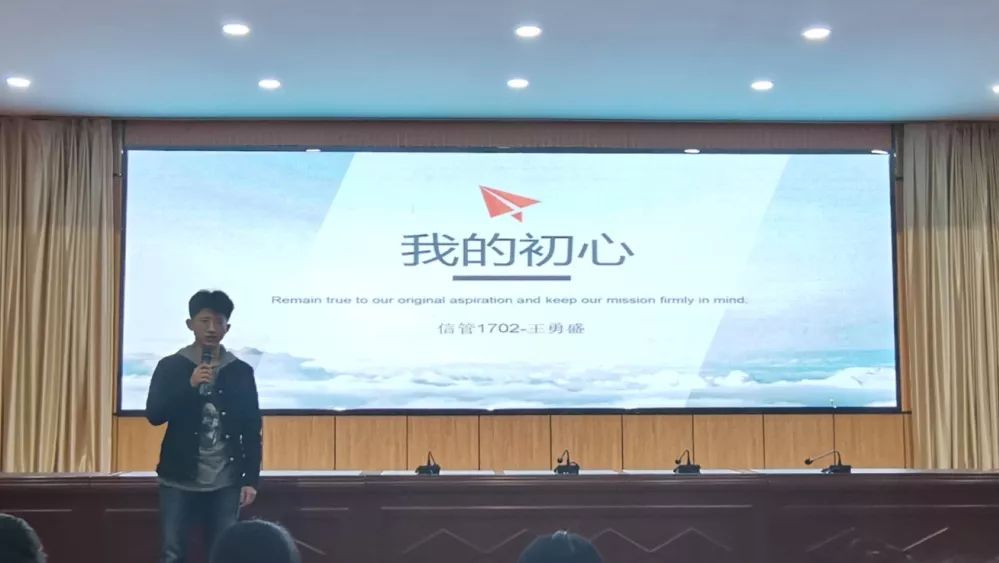 各位选手依次上台大显神通,路晓龙同学的演讲《不忘初心,无悔出发》首先以三个问题开场,听众积极配合他的提问,结合自身情况深思“自己是否做到不忘初心”,将听众带入思考之后,他将自己的观点娓娓道来,那平淡的话语中仿佛蕴含着无限的能量。