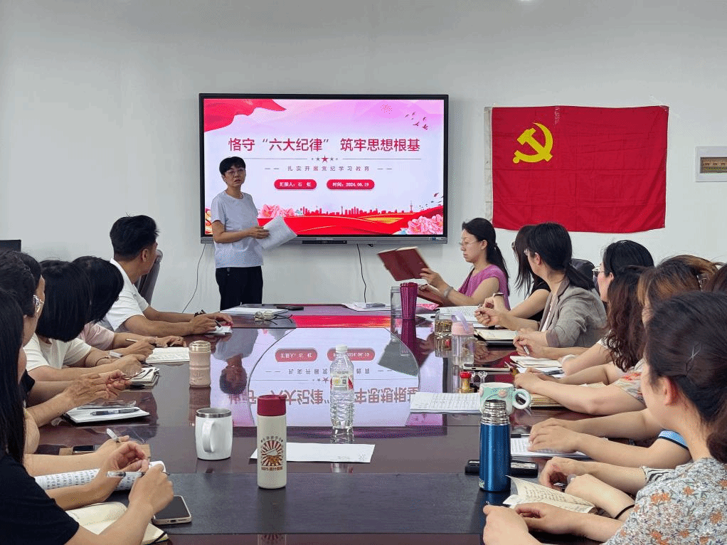 为进一步推动党纪学习教育扎实深入开展,引导全体党员增强学纪知纪明纪守纪的坚定自觉,6月19日下午,护理公司党委书记石虹以《恪守“六大纪律” 筑牢思想根基》为题,为全体党员讲授党纪学习教育专题党课。公司党委委员、党支部书记、全体教工党员参加。