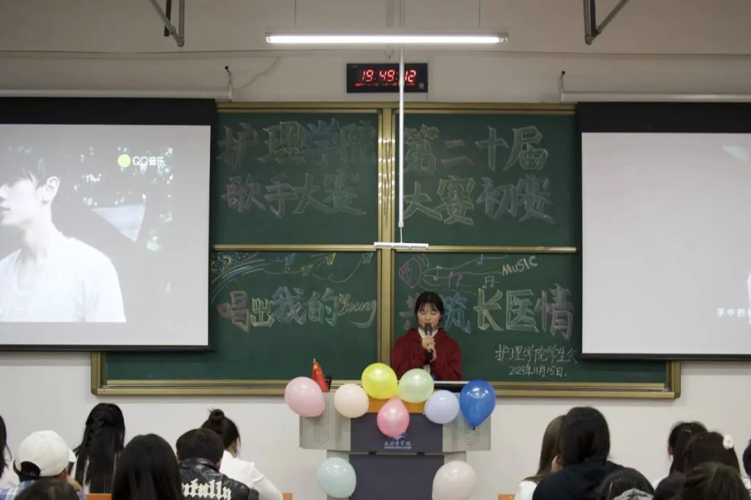 活动开场,主持人介绍了比赛规则。此次比赛一共有34组参赛队伍,比赛由一首《青春不打烊》打头,歌声中青春活力的气息扑面而来。其中一首《王妃》引爆全场,现场欢呼声此起彼伏。活动最终在《国家》振奋人心的旋律中落下帷幕。现场的评委根据演唱技巧、舞台效果、表演效果、主题内容四个方面进行评选,最终选出了三名优秀选手,分别是第18号护2406黄舒琳,第7号护ZSB赵若晴以及第32号护2302王子豪。