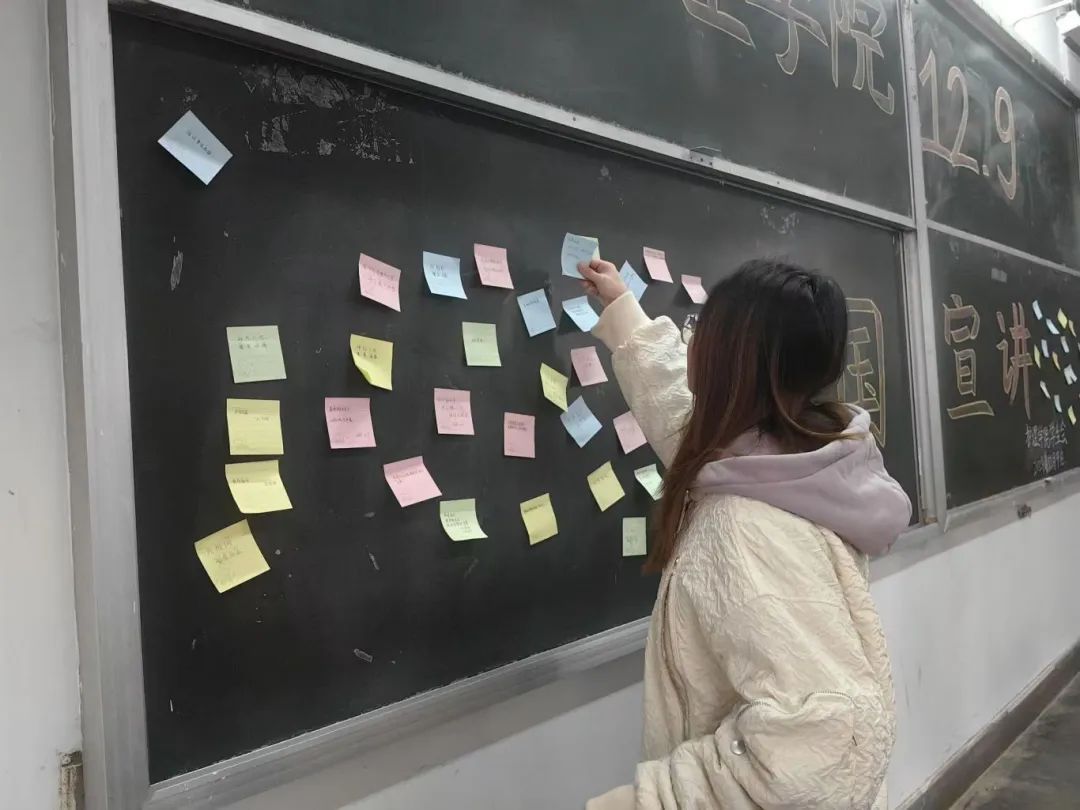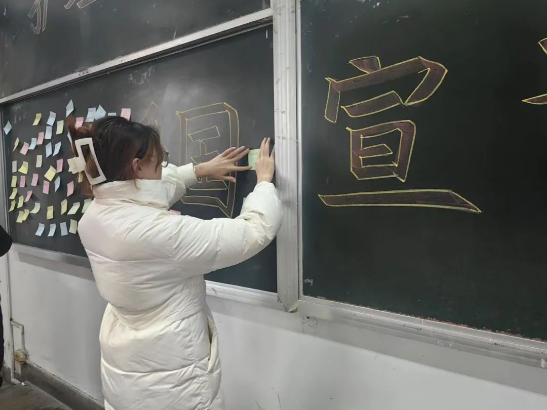 活动开始后,员工们在便签上写下自己对祖国的美好祝愿和期待,并张贴于心愿墙上,表达对祖国的热爱之情。同时,同学们纷纷表示,要将自己的爱国情感转化为实际行动,实现个人价值与社会责任相统一。