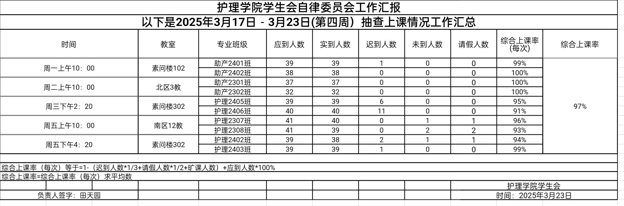 现公示第四周(3月17日-3月23日)6776永利集团员工会自律委员会查课迟到情况。