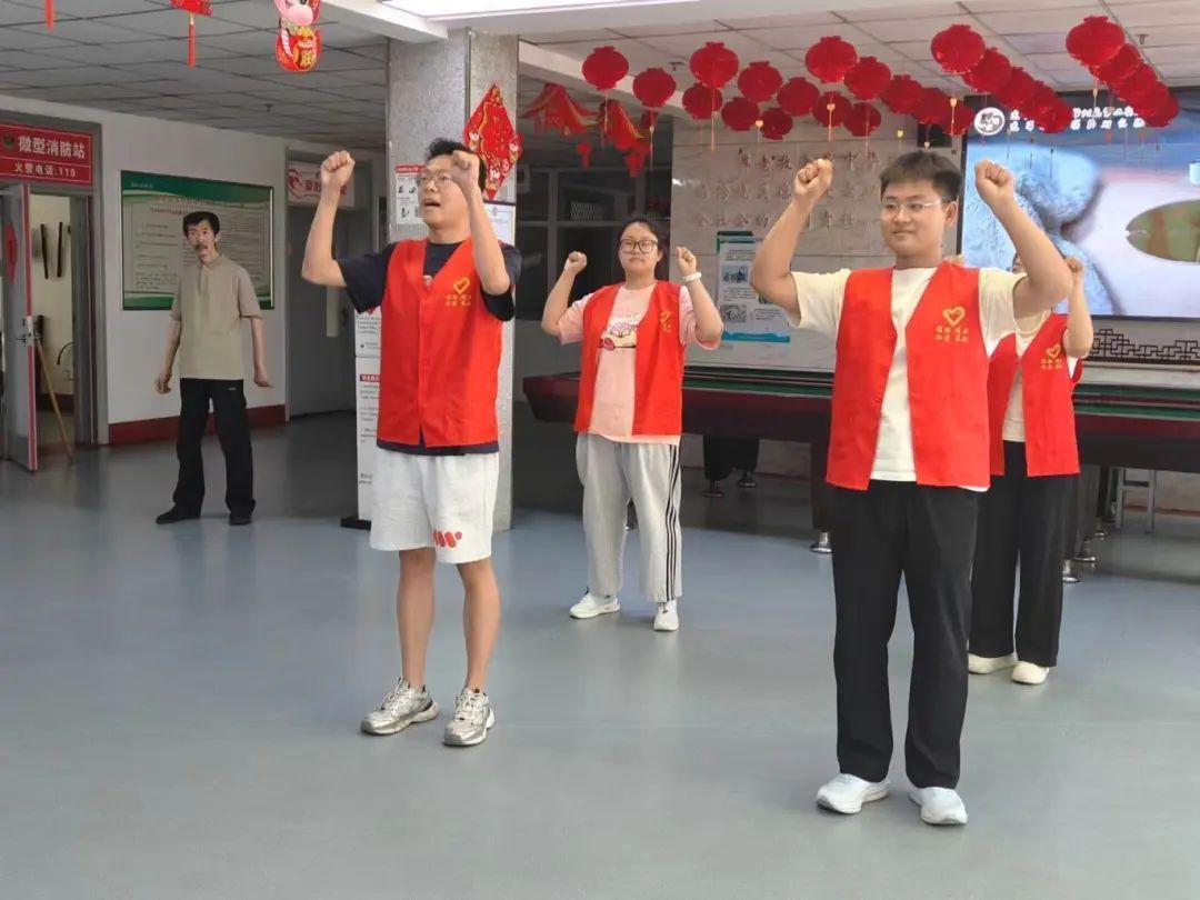 活动现场,志愿者们带来唱歌、跳舞、诗歌朗诵等精彩节目,瞬间点燃温馨欢快的氛围。此外,志愿者们还耐心指导老人一起做颈椎保健操,也与老人唠家常、倾听老人们过往故事,用陪伴传递温暖。