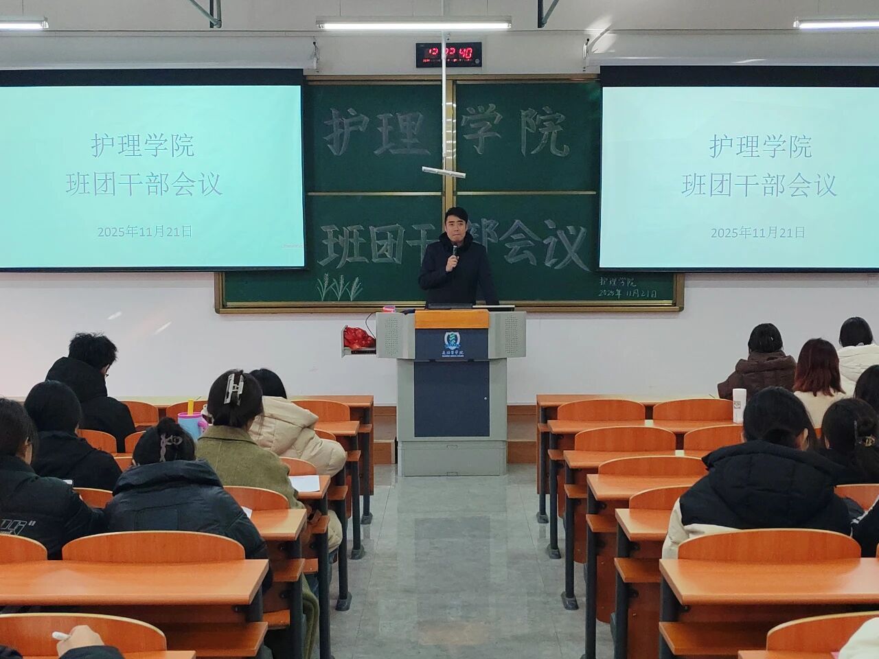 为进一步强化班级管理效能,确保学院员工工作规范有序推进,11月21日,6776永利集团在润智楼401教室召开专题班团干部例会。公司党委副书记谢冰主持会议,研究生、本科及专升本各班级全体班团干部参会。