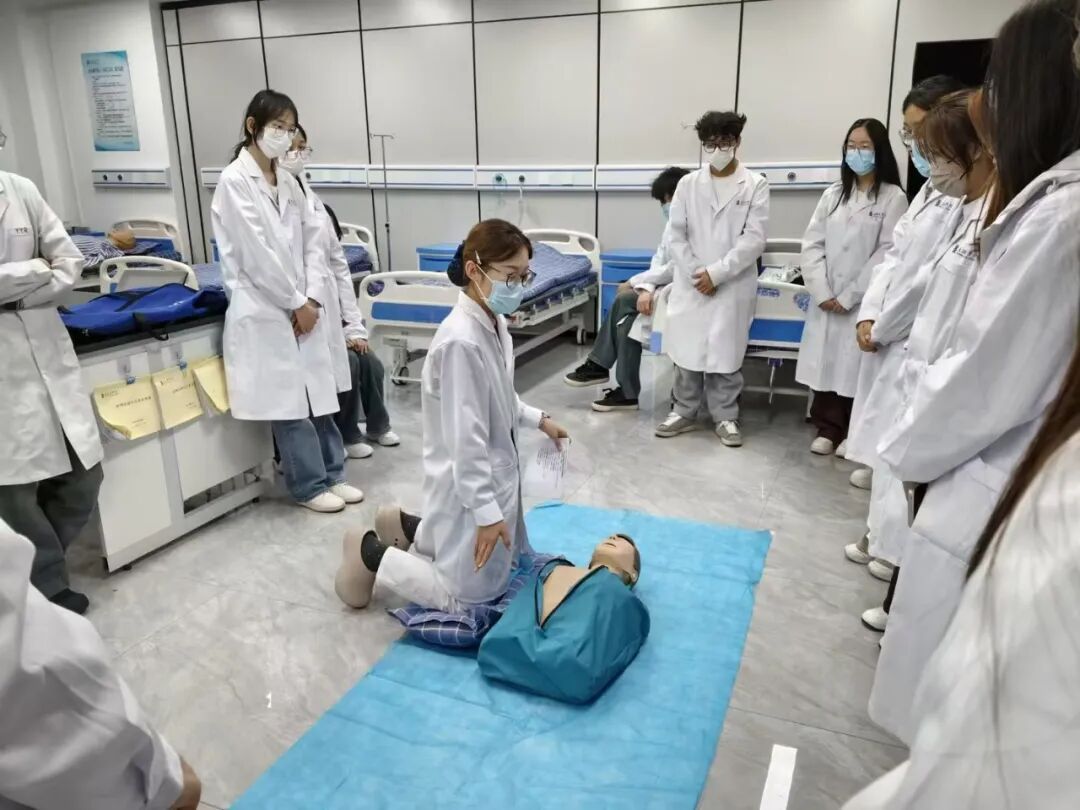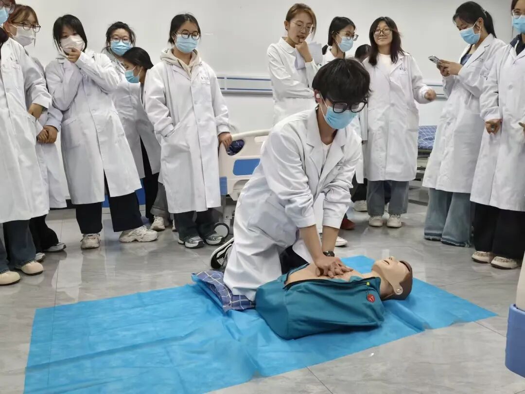 为深入贯彻落实党的二十届四中全会精神,扎实推进健康中国建设,践行“健康第一”教育理念,提升员工应急救护能力,3月31日晚,6776永利集团研究生党支部充分发挥党员先锋模范作用,组织4名研究生党员志愿者,面向2024级医学实验技术1-2班全体同学开展心肺复苏志愿培训活动。活动在研究生党支部书记张静老师指导下进行。