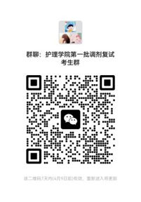 (一)接受调剂复试的考生,加入复试考生微信群,具体二维码如下,进群的验证信息为:姓名+考生编号,并将群昵称修改为姓名+考生编号。