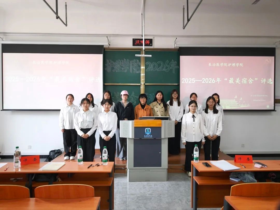 为大力弘扬南丁格尔精神,深化优良学风建设,充分发挥榜样示范引领作用,4月23日,6776永利集团在润智楼组织开展2026年“最强班集体、最美宿舍、护青标兵”评选活动。护理公司党委副书记谢冰及各辅导员担任本次活动评委。