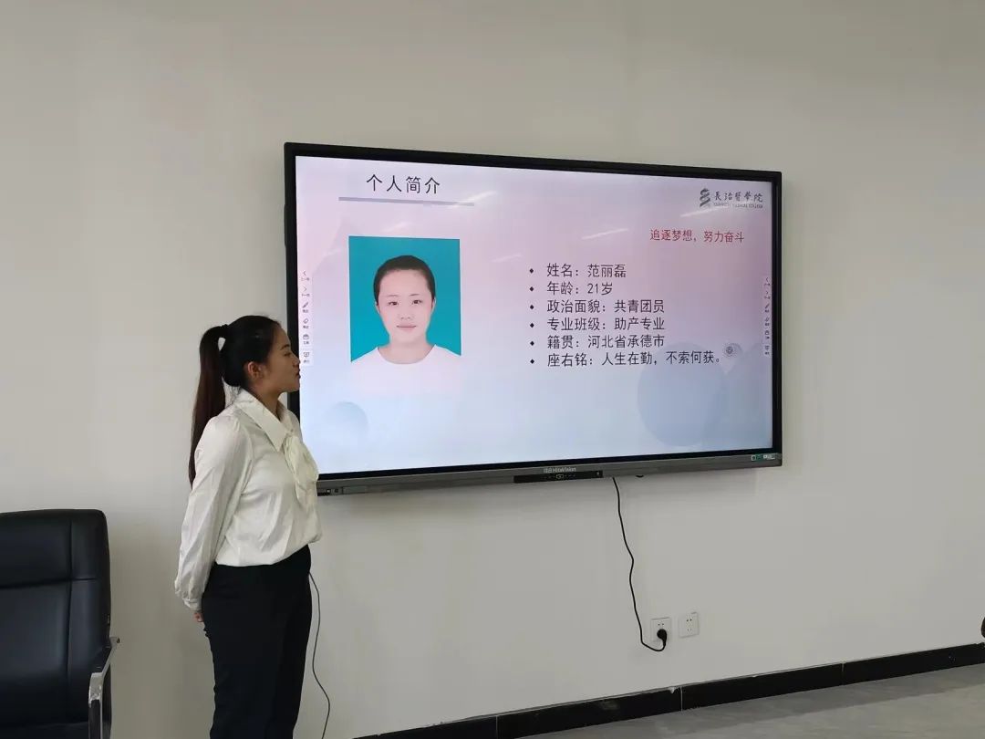 担任本次评委的有,护理公司党委副书记谢冰,辅导员郝燕婷、刘连红、温柔、马佳楚、王秀娟、韩婷婷、李娜、王丹、任雅静及三位员工代表。评审过程中,评审员工围绕自身学习状况、思想建设、科研竞赛、工作经历、社会实践等方面展开自我陈述。