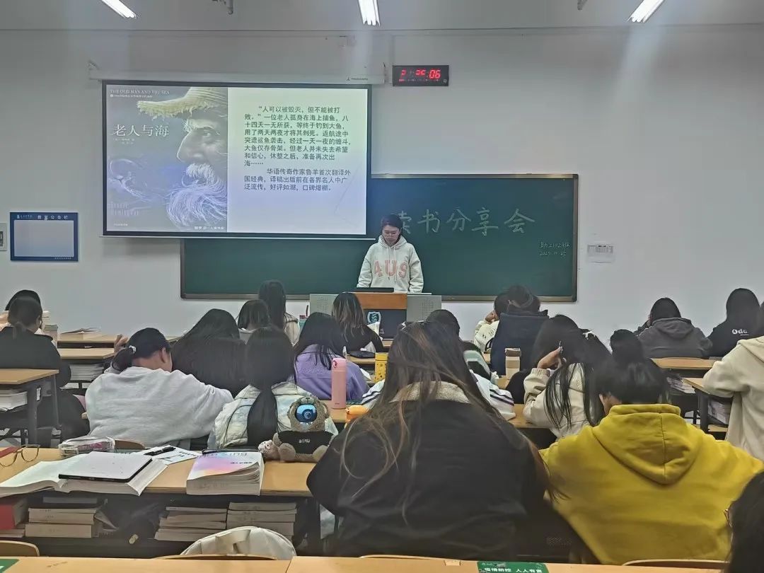 从余华的《活着》到张嘉佳的《云边有个小卖部》,从摩西奶奶的《人生永远没有太晚的开始》到海明威的《老人与海》……本次读书分享会同学们推荐的书目涉及题材广泛,内容形式多样,既有传统意义上的文学作品,又涵盖了人生、哲学等领域的专著,大家在分享交流中互通有无、碰撞思维,起到了共同学习和进步的良好效果。