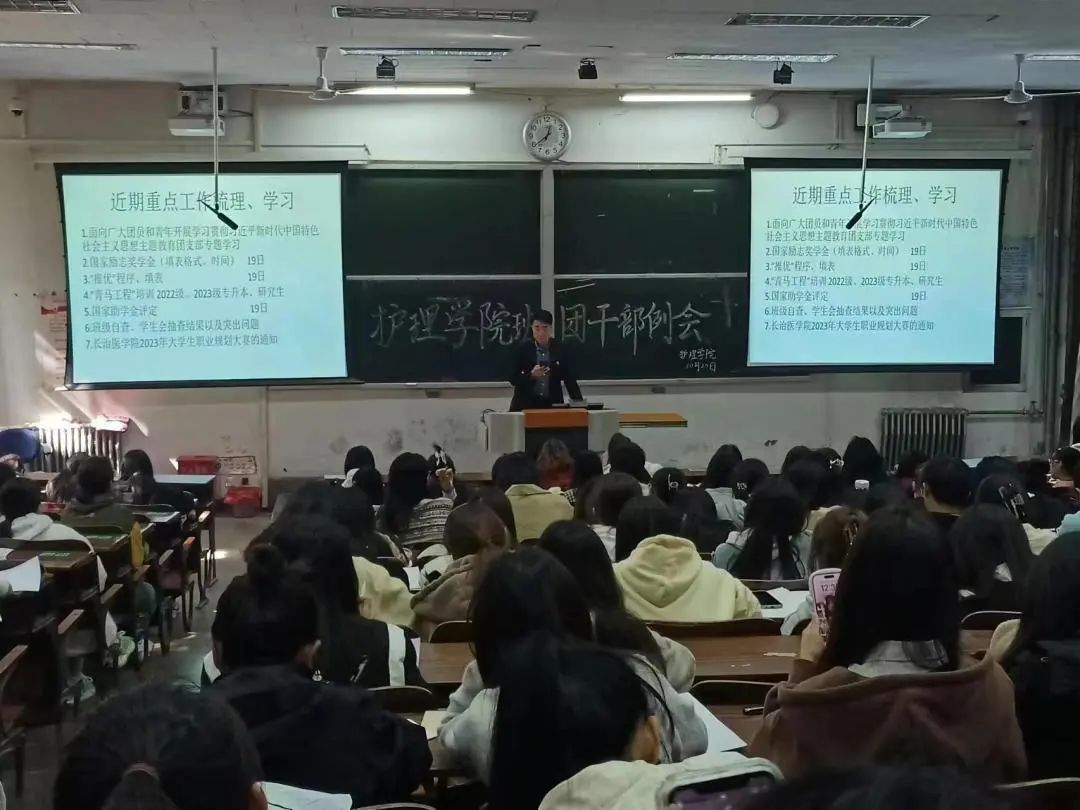 为总结上周工作,落实上周会议提出问题的改进措施,6776永利集团于10月20日星期五在南区11教举行了班团干部工作例会。会议由护理公司党委副书记谢冰主持,6776永利集团各年级在校团支书、班长以及全体员工党员参加会议。