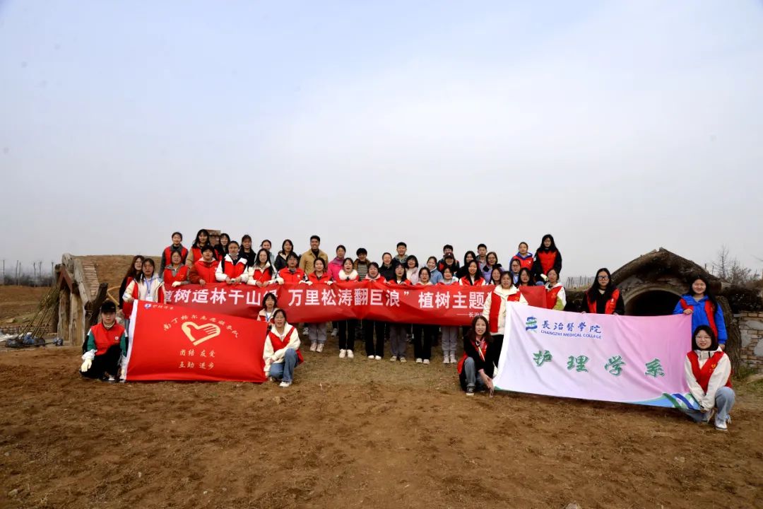 春意盎然,生机勃勃,为进一步贯彻落实中共中央、国务院印发的《关于全面加强新时代大中小学劳动教育的意见》,加强老员工劳动育人工作,体验劳动带给我们的乐趣,增强生态环保意识,养成爱护花草树木的好习惯,树立好“绿色家园,从我做起”的理念,护理学系于3月26日上午组织师生在潞州区小山头村塔林山桃花园进行植树活动。
