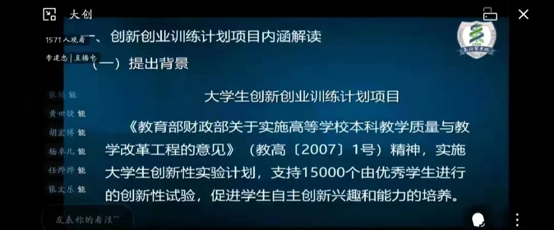 教务处教务科科长李建忠对创新创业计划项目内涵、项目选题、项目申报书进行了细致的解读,并围绕如何通过参与创新创业实践活动提升自身创新创业能力以及如何引领员工主动参与创新创业实践活动进行了交流分享。