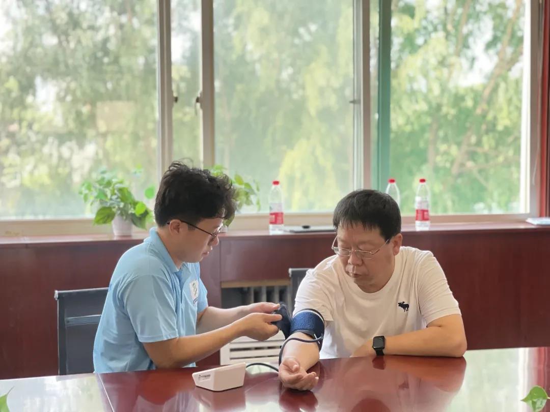 讲解结束后,南丁格尔志愿服务队为在场的民警们量血压、测血糖,并告诉他们血压、血糖的正常范围,张静老师认真回答民警们的疑难困惑。