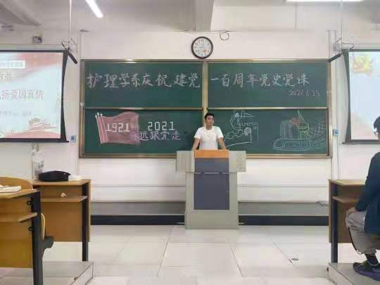 6月23日中午,护理学系分团委书记谢冰老师结合自身专业特长以“唱红色歌曲,弘扬爱国真情”为主题,为五龙校区20级护理学系的同学们带来了一堂独具特色的音乐视听党课。