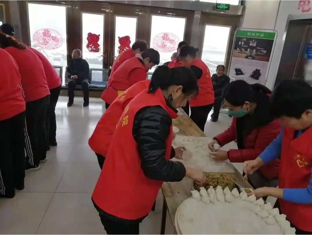 社区以及志愿者形成的志愿团体为老人们包饺子。