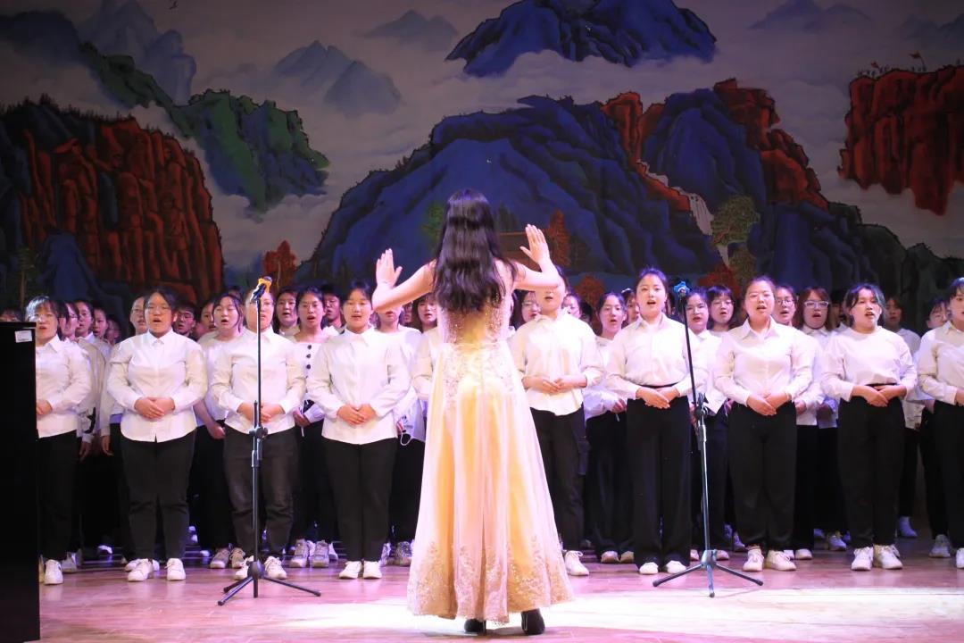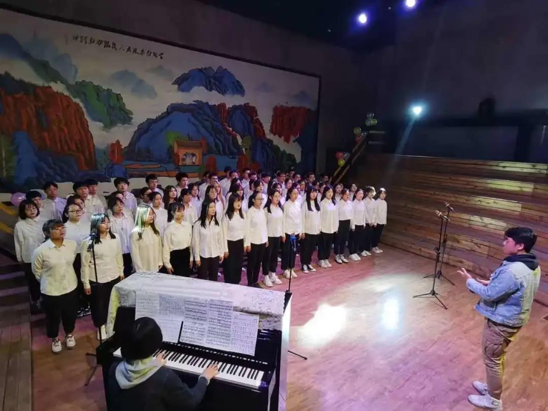 一支支队伍在工作人员的带领下有条不紊的候场,入场。在舞台上,每位同学都齐心协力,全心全意的唱着,嘹亮的歌声从同学们的口中飘向观众席。在五龙校区的几支队伍提前录制好视频,为我们进行了线上表演。
