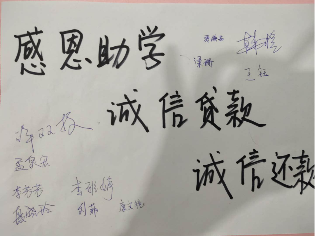本次线上诚信教育主题活动的成功开展,提高了同学们对国家助学贷款的正确认识,强化了员工的诚信还款意识,促进了国家助学贷款工作健康持续的发展,树立了当代优秀老员工诚实守信的新风尚。让同学们深知只有当我们对于诚信的修养提了,我们的人生才有可能走上一条“可持续发展的道路”,才能更好地抓住每一个宝贵的人生际遇,让自己真正成为社会的栋梁之材。