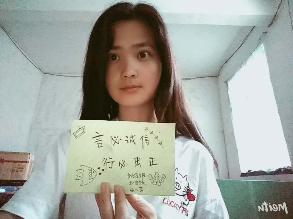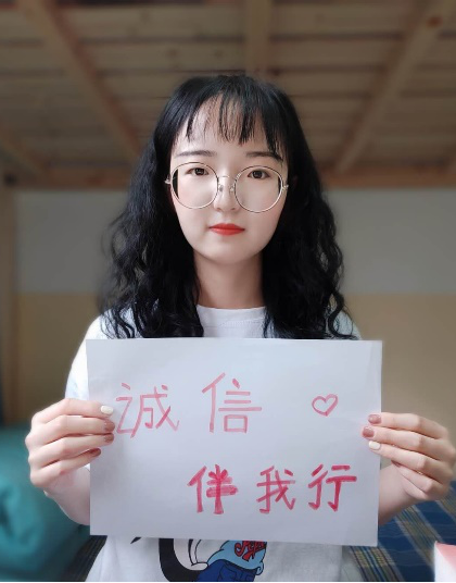 在诚信“云签名”活动中,同学们以“举牌拍照”或“小视频”的形式,郑重地签下了自己的名字。营造“人人知诚信,诚信我先行;战‘疫’必胜,诚信同行”的氛围,让诚信深入每一位同学的内心,成为每一位同学宝贵的无形资产。