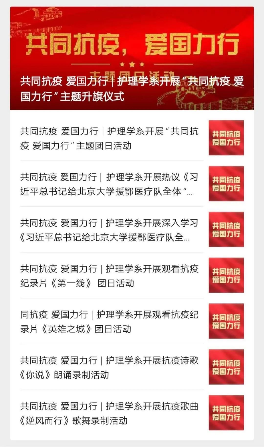 在五四青年节期间,推出一系列以“共同抗疫 爱国力行”为主题的推文,引导老员工树立正确的世界观、人生观、价值观,厚植员工爱国主义情怀。512国际护士节期间推出一系列以“我眼中的最美护士”为主题的推文,致敬那些平凡而又伟大的身影,愿“南丁格尔之灯”照耀眼眸永远明亮。