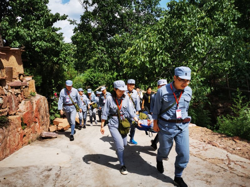 下午,大家在伤员转移任务中弘扬红色军医情怀,传承红色军医血脉。在宽嶂山红色文化室,追忆黄崖洞保卫战和宽嶂山资财保卫战的历史,缅怀八路军英勇作战的英雄事迹,追忆革命先辈的丰功伟绩。在庄重肃穆的宽嶂山革命烈士公墓,瞻仰烈士功绩,告慰烈士英魂,传承革命精神,激发责任担当。
