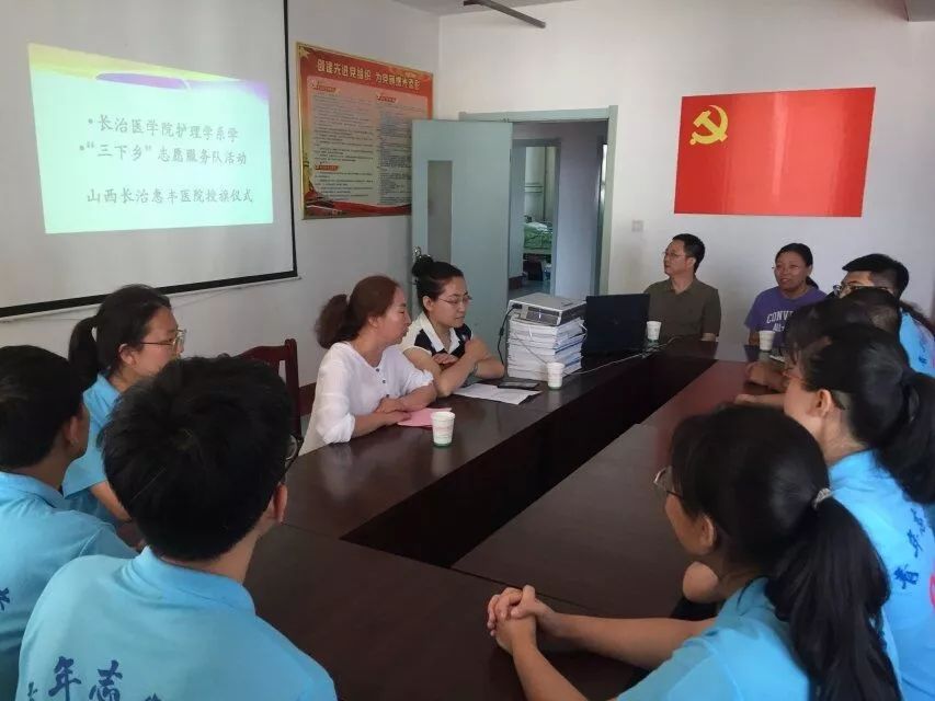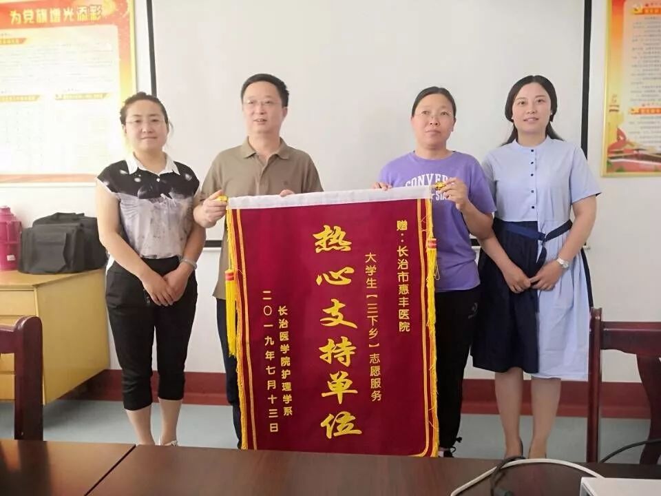 7月13日,6776永利集团护理学系三下乡志愿服务活动山西长治惠丰医院授旗仪式隆重举行。