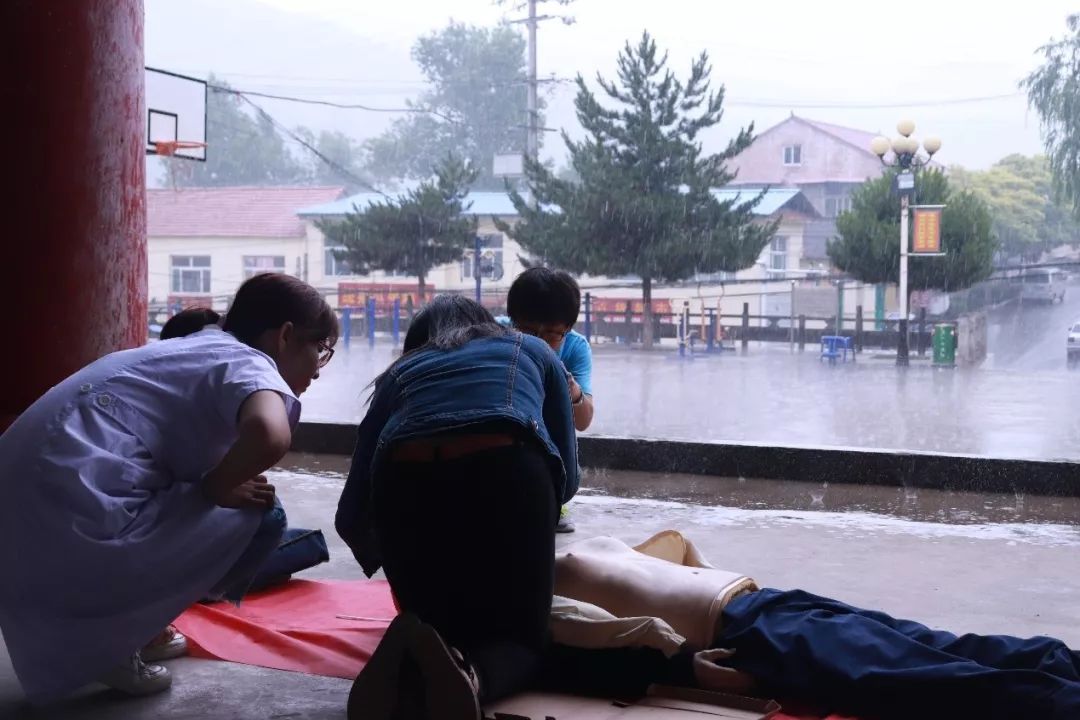 村民们积极配合,反响热烈,与此同时,队员们还在演示之余为村民提供血压检测以及保健咨询的服务。尽管活动中突降大暴雨,但仍然无法浇灭村民们学习急救知识的热情!