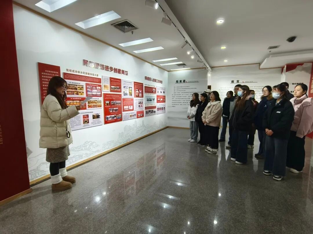 在讲解员的带领下,两个支部的党员依次参观了“初心引领”“休戚与共”“榜样聚力”“党建铸魂”等展区。通过图文资料、历史故事等形式,系统学习了铸牢中华民族共同体意识的核心内涵,深入了解各民族在不同时期的奋斗历程,以及学校在民族团结进步工作中的实践成果。