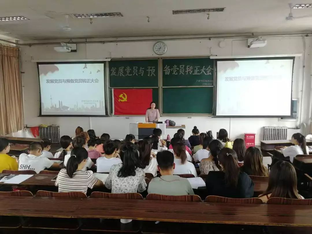 大会开始后,张召弟书记简述了本次大会的议程,包括讨论表决14名预备党员转正,接收19名同志成为预备党员的决议。然后14名预备党员依次上台宣读了转正申请书,汇报了自己预备期间内,在思想上、学习上、日常生活中等方面的具体表现,表达了成为正式党员后的发展方向。后第一、第二入党介绍人分别发表意见,最后由在场的正式党员进行无记名投票表决,经过表决,一致同意李子颖等14名同志按期转为中共正式党员。