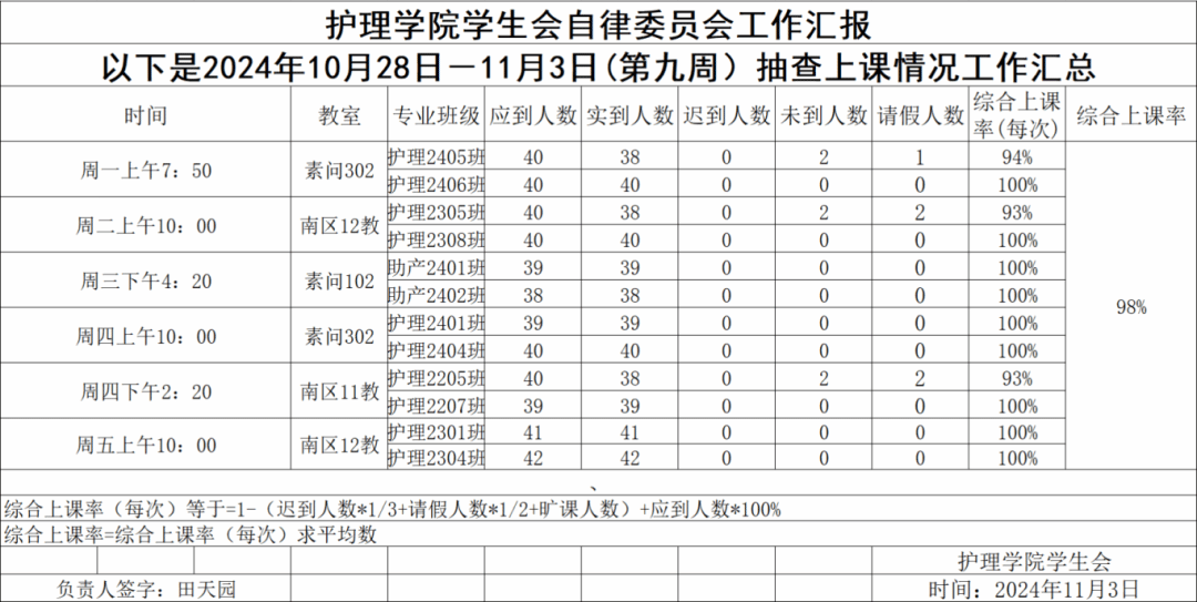 现公示第九周(10月28日-11月3日)6776永利集团员工会自律委员会查课迟到情况。