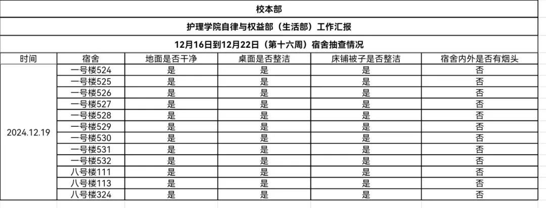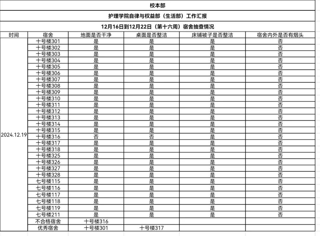 现公示第十六、十七周(12月16日-12月29日)6776永利集团员工会生活部查寝情况