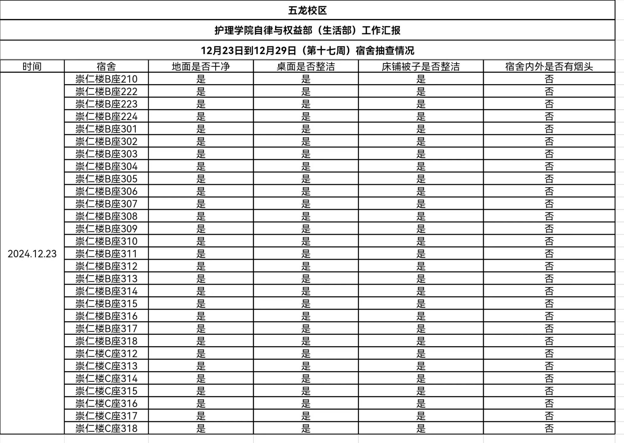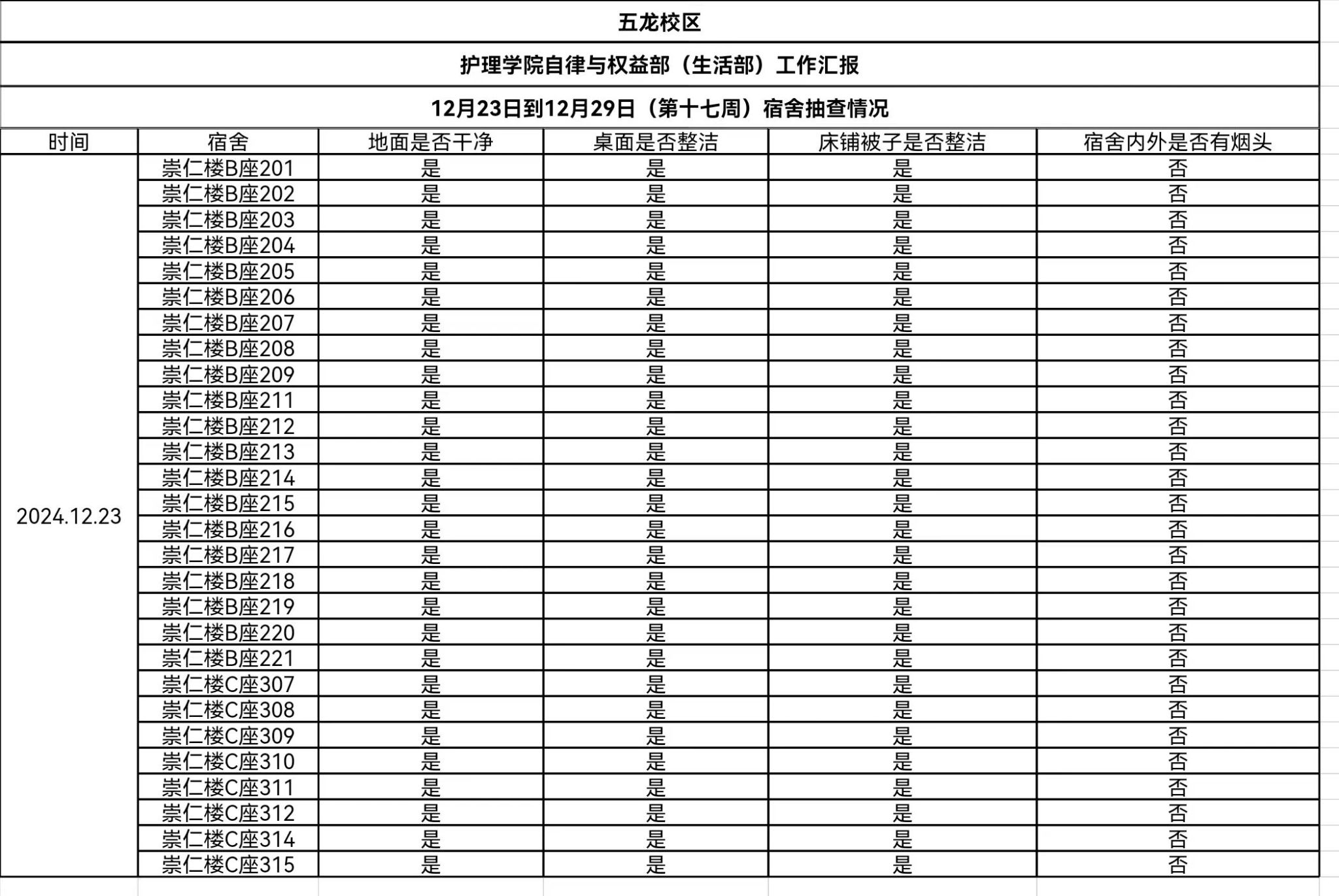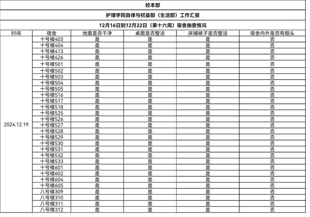 对校本部及五龙校区在12月19日和12月23日进行了查寝