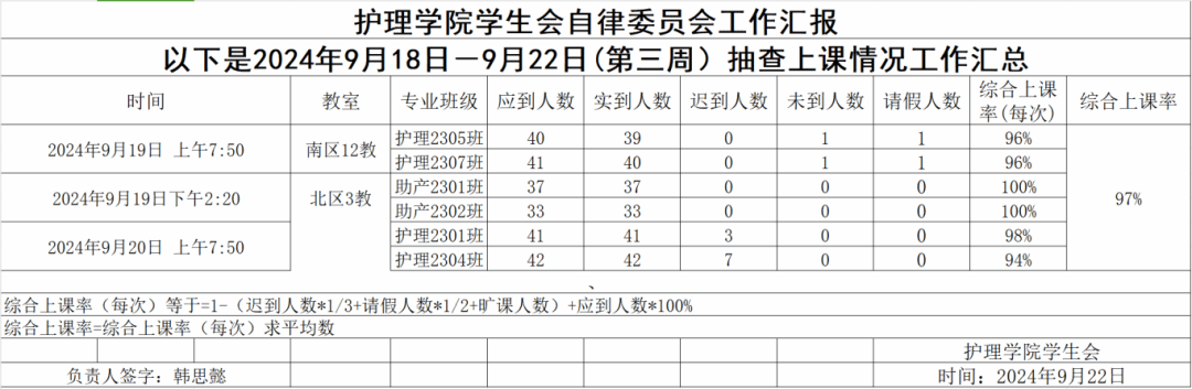 现公示第三周(9月18日-9月22日)6776永利集团员工会自律委员会查课迟到情况。