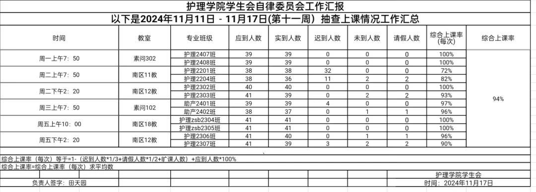 现公示第十一周(11月11日-11月17日)6776永利集团员工会自律委员会查课迟到情况。