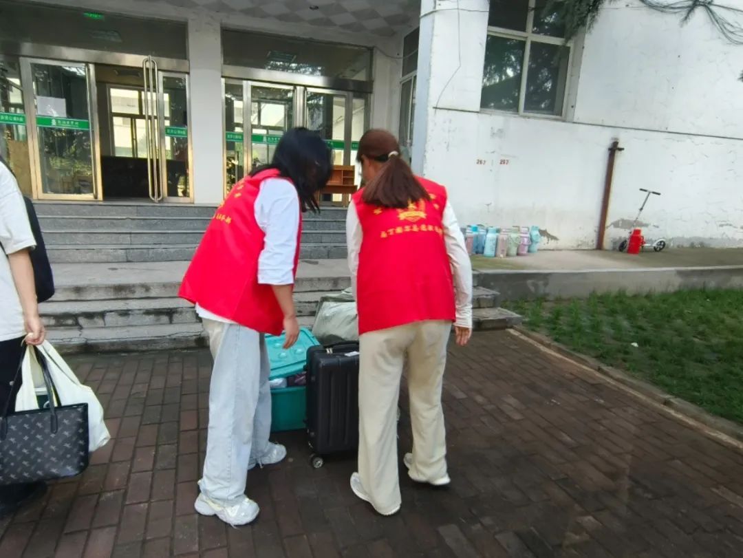 早上6点半,搬迁工作正式启动。学院领导与辅导员全程驻守现场,统筹协调各项事宜;志愿者与同学们分工协作、默契配合,高效完成行李装箱、物资运送、校区交接与宿舍整理等环节,确保学院2024级员工顺利入住。