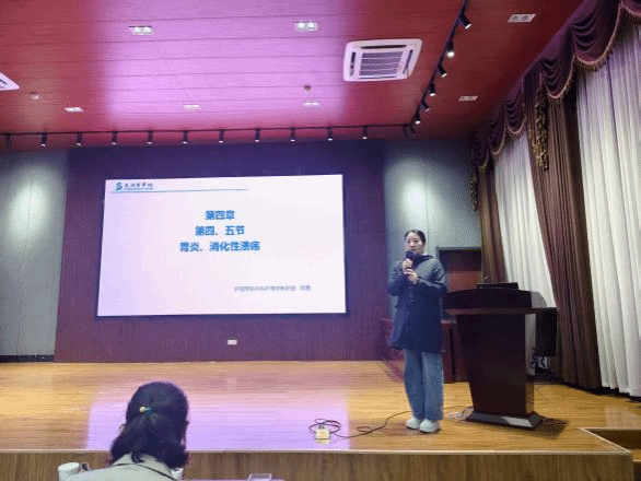 为直观检验教学整改成效,会议现场还安排了针对审核评估期间课程的教学模拟环节。内科护理学教研室郎曼与外科护理学教研室魏惠婷分别就“胃炎、消化性溃疡病人的护理”和“颅内及椎管内血管性疾病病人的护理”进行了授课演练,陈爱香与贺利平从授课形式、教学设计和教案内容等方面提出了具有针对性的改进意见。